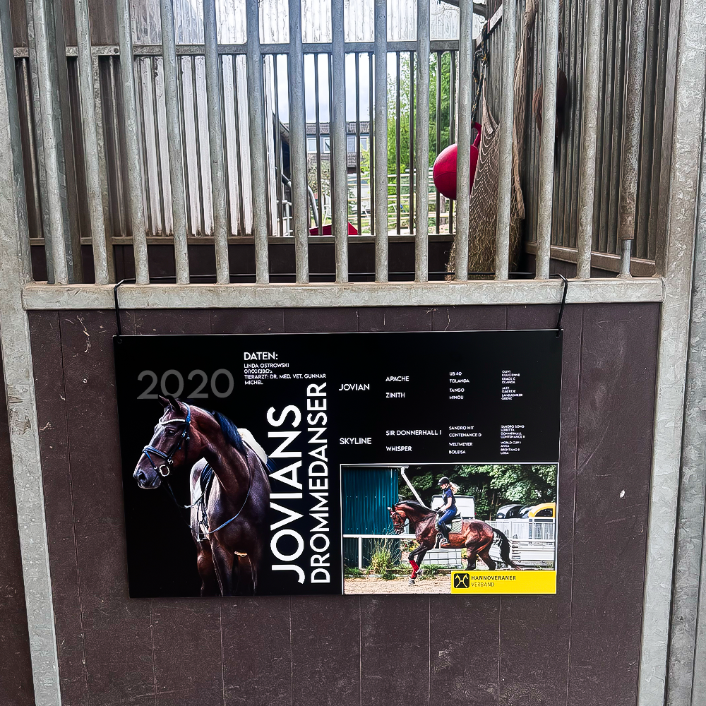 Verleihen Sie Ihrer Stallgasse eine einheitliche und professionelle Optik mit unserer extra großen Boxenschild-Halterung. Speziell für breite Boxenschilder oder auch als Halterung für mehrere Schilder konzipiert, bietet dieses Produkt eine herausragende Stabilität und schlichte Eleganz.