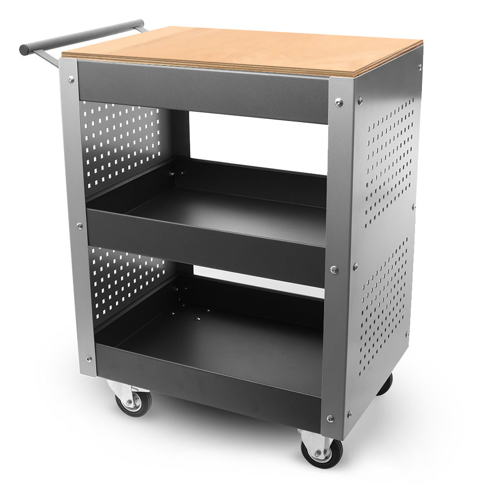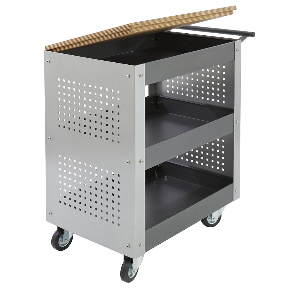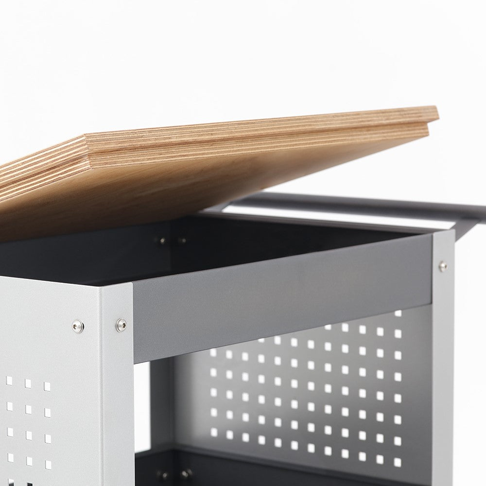 Mit der optionalen Holzabdeckung wird der Stallwagen im Handumdrehen zu einer mobilen Ablagefläche oder einem kleinen Arbeitstisch – ideal zum Vorbereiten von Pflegeutensilien, Ausrüstung oder zur schnellen Sattelpflege.