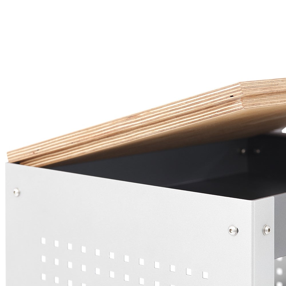 Die passgenaue Multiplex-Platte wird einfach in die obere Vertiefung gelegt – ganz ohne Schrauben oder zusätzliches Befestigen. Die stabile Holzplatte liegt eben auf und kann bei Bedarf schnell wieder entnommen werden.