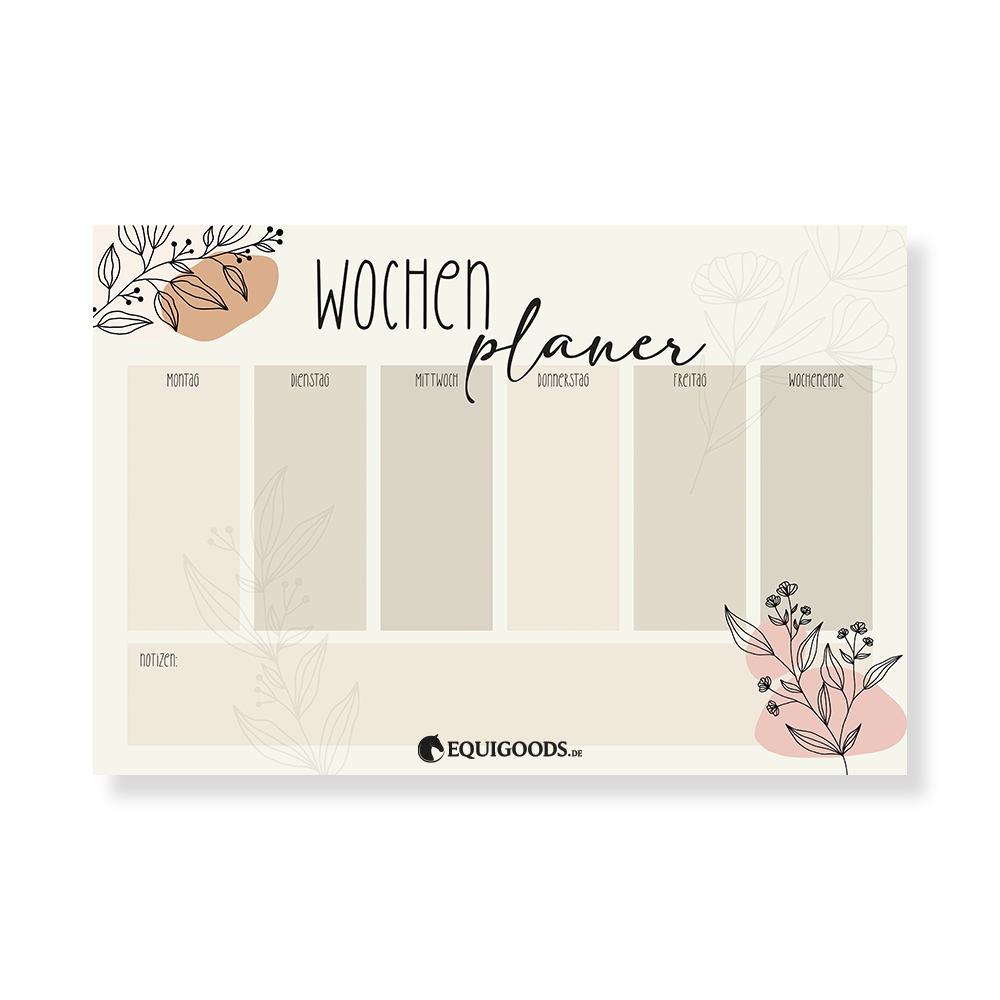 Unser beschreibbarer Trainingsplan im Format 40 x 27 cm ist die ideale Lösung, um den Überblick über das tägliche Training deines Pferdes zu behalten. Mit einer klaren Wochenstruktur von Montag bis Sonntag sowie einem zusätzlichen Notizfeld hast du alle wichtigen Einheiten immer im Blick – übersichtlich, praktisch und individuell anpassbar.